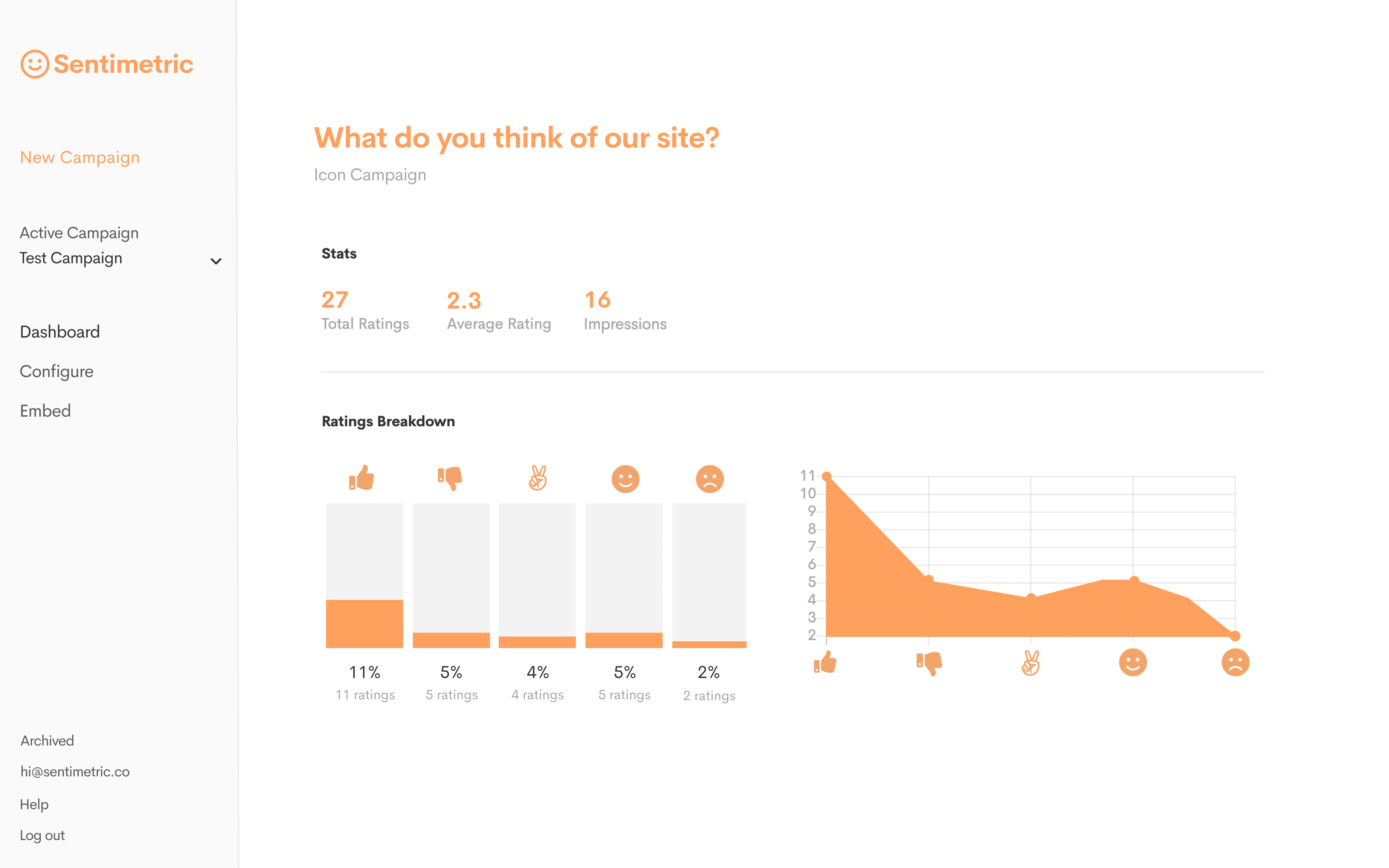 Sentimetric helps you know what your customers are thinking with icon feedback.